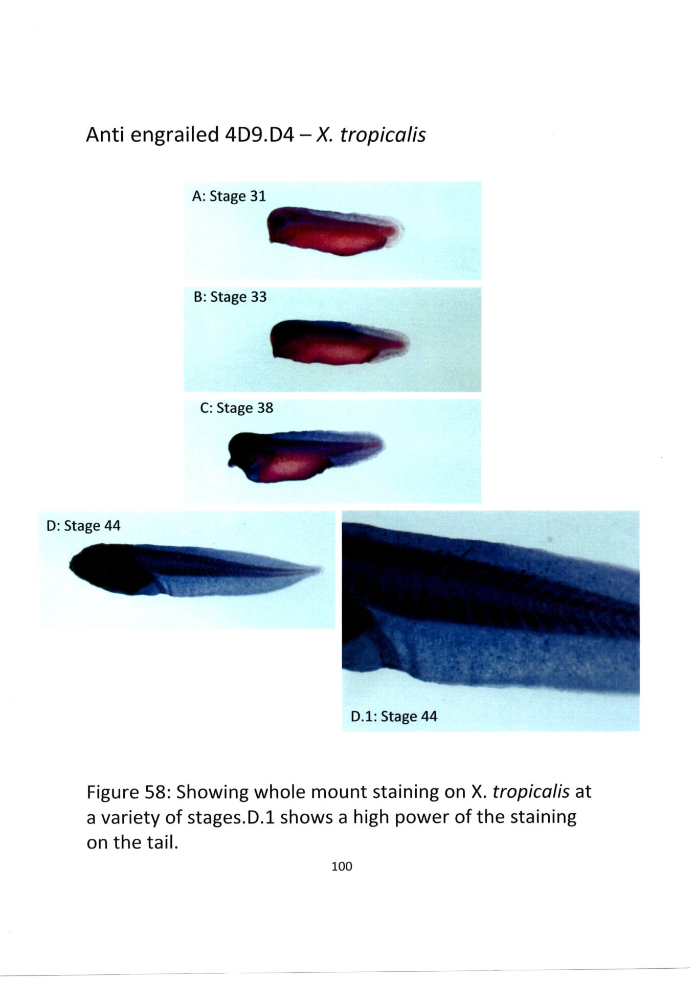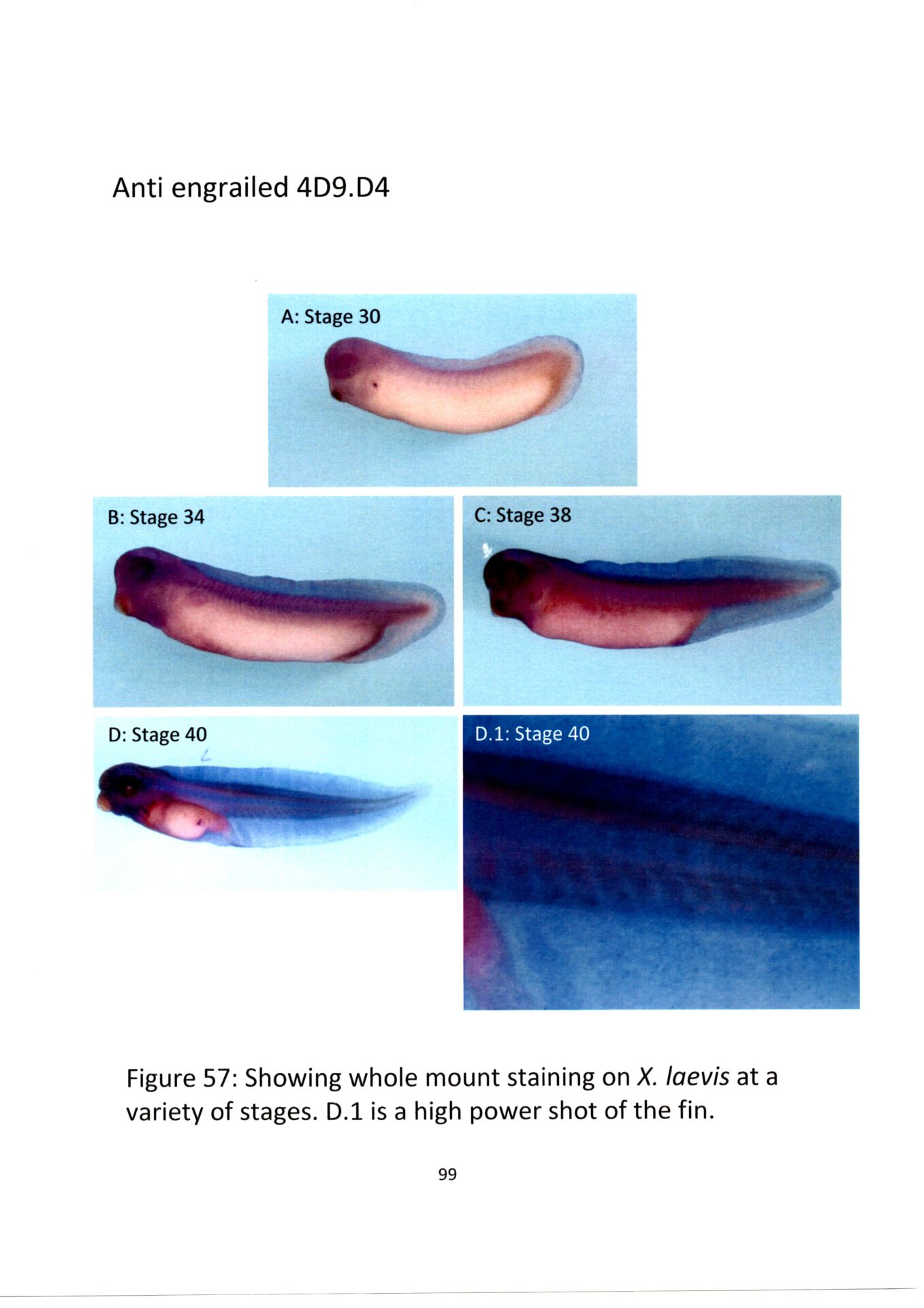 Staining becomes apparent at stage 30.