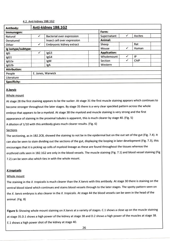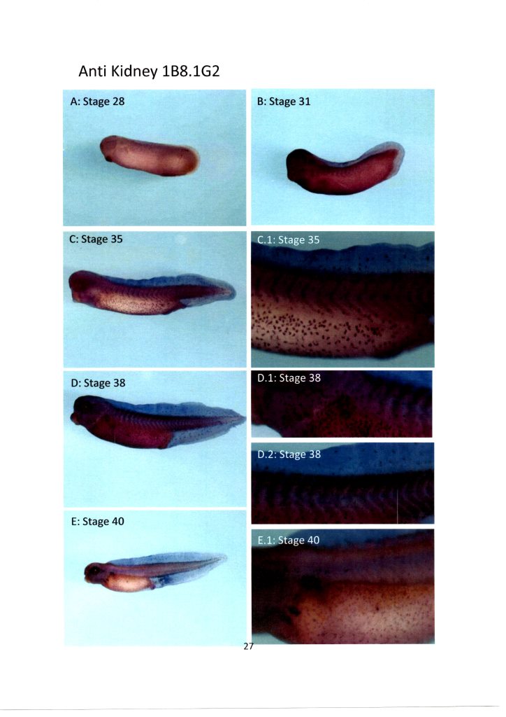 Can be used in wholemounts and sections. First appearing at stage 28 on the sucker.