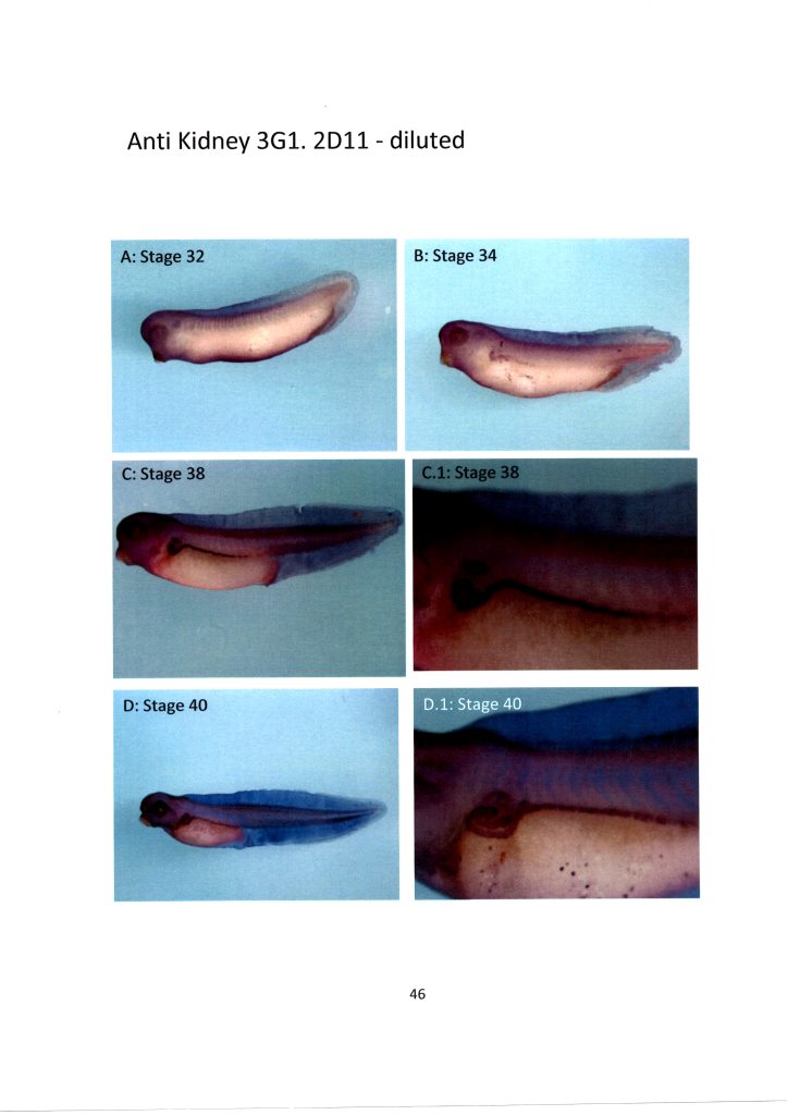Staining in the tubules can begin to be seen at stage 34, and gets progressively stronger with development