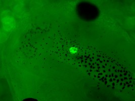 Transgene description: Zebrafish flh promoter driving GFP, GenBank accession number AY214391. REMI