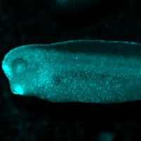 Phenotype: The larvae show blue fluorescence that turns into yellow fluorescence upon Cre or FLP recombinase action.